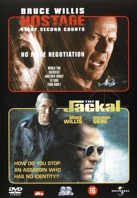 THE JACKAL In dit wereldwijde kassucces is Bruce Willis, The Jackal, de meest geduchte huurmoordenaar die we kennen. Hij moet een topman van de Amerikaanse regering elimineren. Declan Mulqucen (Richard Gere), een IRA-terrorist die gevangen zit, is de enige die hem kan stoppen. De onderdirecteur van de FBI (Oscar® winnaar Sidney Poiter) neemt dan de grootste gok van zijn leven. Hij laat de ene crimineel vrij om de andere te pakken. Zo ontrolt zich een uiterst explosief actiespektakel vol bloedstollende verwikkelingen. Twee van de grootste supersterren aller tijden zetten twee prachtige rollen neer. The Jackal zit boordevol spectaculaire acties en bijzondere special effects. Dit zorgt ervoor, samen met de onverwachte wendingen en de verrassende ontknoping, dat The Jackal een fi lm is die je niet wilt missen!